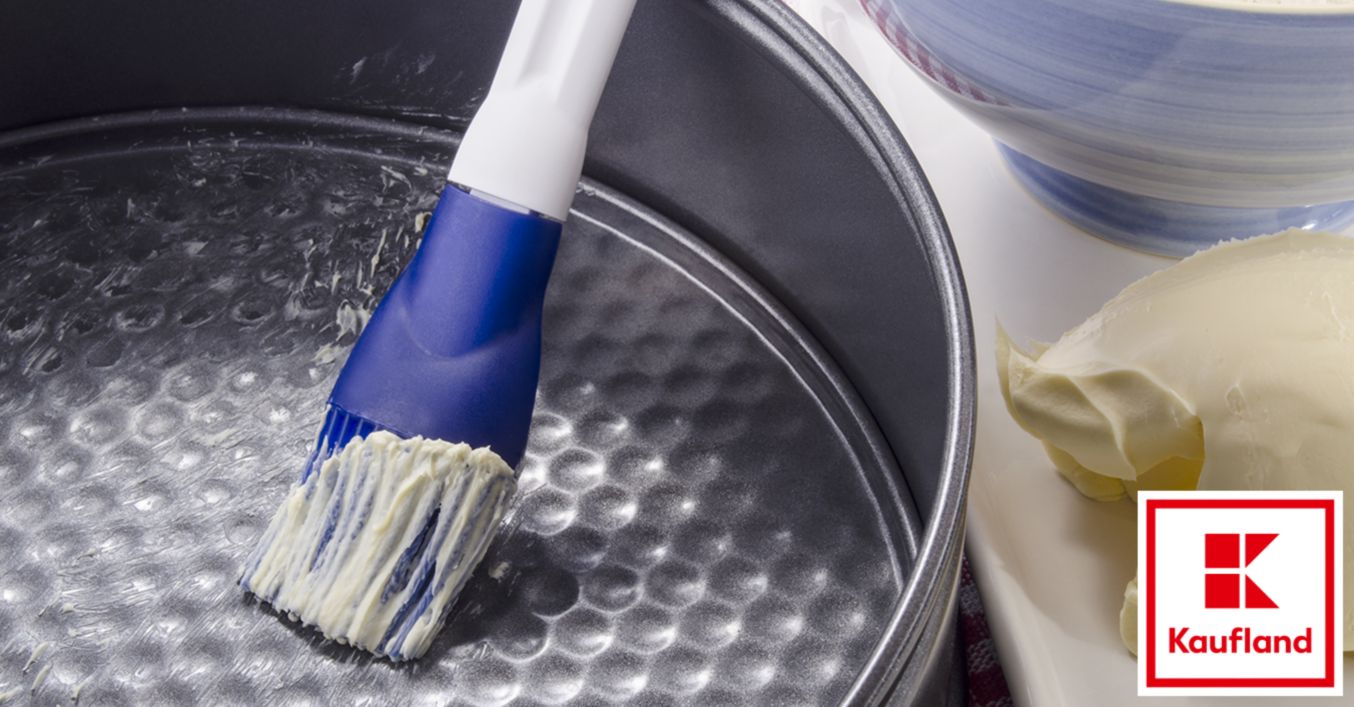 - Butter: Damit Butter in der Form schön geschmeidig ist, nimm das Fett rechtzeitig aus dem Kühlschrank. Verwende zum Einfetten deine Hände, dies erwärmt die Butter zusätzlich. So lässt sie sich noch besser verteilen. Wer das Gefühl von Backfett an der Haut nicht mag und zusätzlichen Müll durch die Verwendung von Backpapier oder Küchenrolle vermeiden will: Backpinsel mit Silikonborsten sind extra flexibel und erwischen auch die kleinste Ecke. Das große Plus von Butter: Sie gibt ein leckeres Aroma.