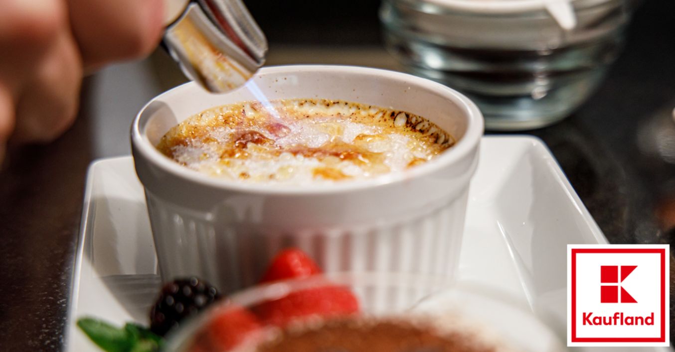Das Dessert mit der knackigen Karamellkruste kennen – und lieben – wohl die meisten von uns. Es handelt sich um eine traditionelle, französische Süßspeise aus aromatisierter Eier-Sahne mit einem knusprigen Überzug aus geschmolzenem Zucker. Die Oberfläche der gestockten Creme wird nach dem Backen mit Zucker bestreut und im Ofen per Grillfunktion oder mit einem speziellen Flambiergerät karamellisiert. Das sorgt dafür, dass die Kruste beim Hineinstechen mit dem Löffel verführerisch knackt. Appetit bekommen? Hier geht’s zum Rezept.