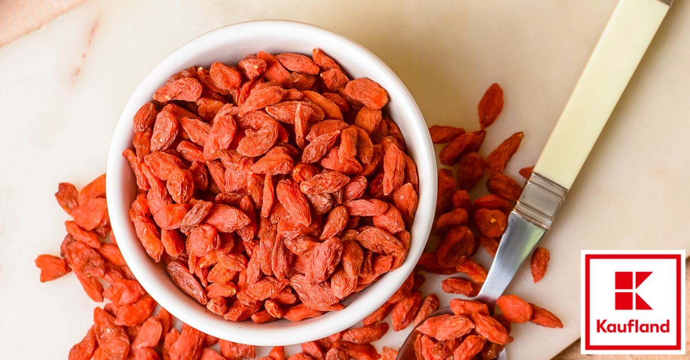 Getrocknete Goji-Beeren machen sich hervorragend in Müslis und Salaten, auf Smoothie-Bowls, zu Joghurt, in Kuchen und Brot und sogar zu Pasta. Tipp: Vor der Verwendung kurz in warmem Wasser quellen lassen.