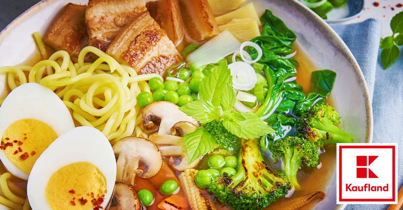 Ramen sind japanische Nudelsuppen, die aus einer Brühe mit verschiedenen Einlagen bestehen. In Japan zählen die beliebten Suppen zum Fastfood, das in zahlreichen Ramen-Restaurants zubereitet und verkauft wird. Doch auch in Deutschland erfreuen sich die herzhaften Nudelsuppen mittlerweile großer Beliebtheit. Durch ihre verschiedenen Bestandteile lassen sie sich für jeden Geschmack individuell zusammenstellen. Neben der Hauptzutat, den Ramen-Nudeln, besteht die reichhaltige Brühe aus verschiedenen Toppings wie Fleisch, Ei oder Gemüse, verschiedenen Gewürzen und Aromaölen.