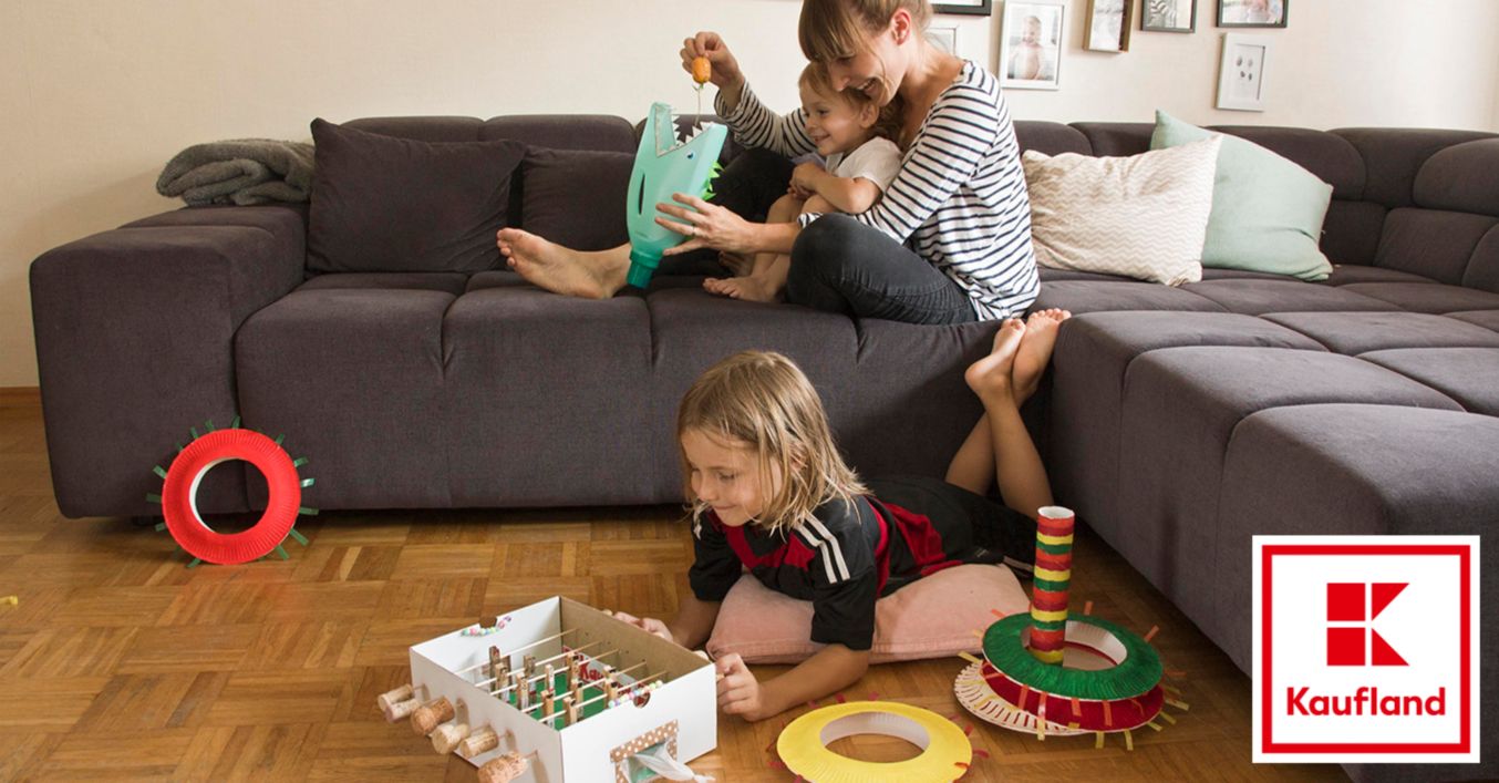 Wenn du viel Zeit hast, kannst du auch alle drei Bastel-Ideen mit deinen Kindern umsetzen und anschließend eine lustige Wohnzimmer-Olympiade machen.