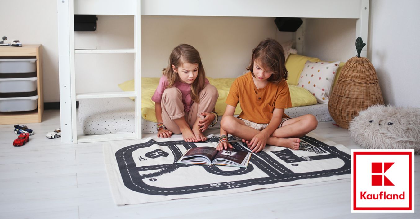 Neben den Privaträumen solltest du deinen Kindern auch Gemeinschaftsbereiche bieten. Ein gemeinsamer Tisch für Bastelnachmittage und zum Abfragen von Vokabeln bringt die Geschwister zusammen. Wenn du eine Spielecke planst, nimm einen großen Spielteppich, der zentral platziert ist. So können die Kleinen die wildesten Abenteuer spinnen und erleben.