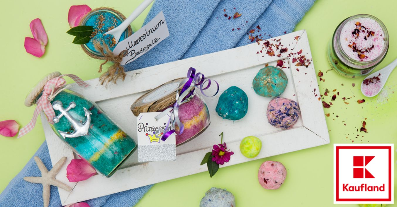 Du bist jetzt so richtig in DIY-Fahrt gekommen? Schön, dann haben wir noch eine weitere Idee, wenn du dir den ultimativen, bunten Badespaß wünschst. Aus ganz wenigen Zutaten kannst du wunderbares, duftendes Badesalz selbst anmischen.