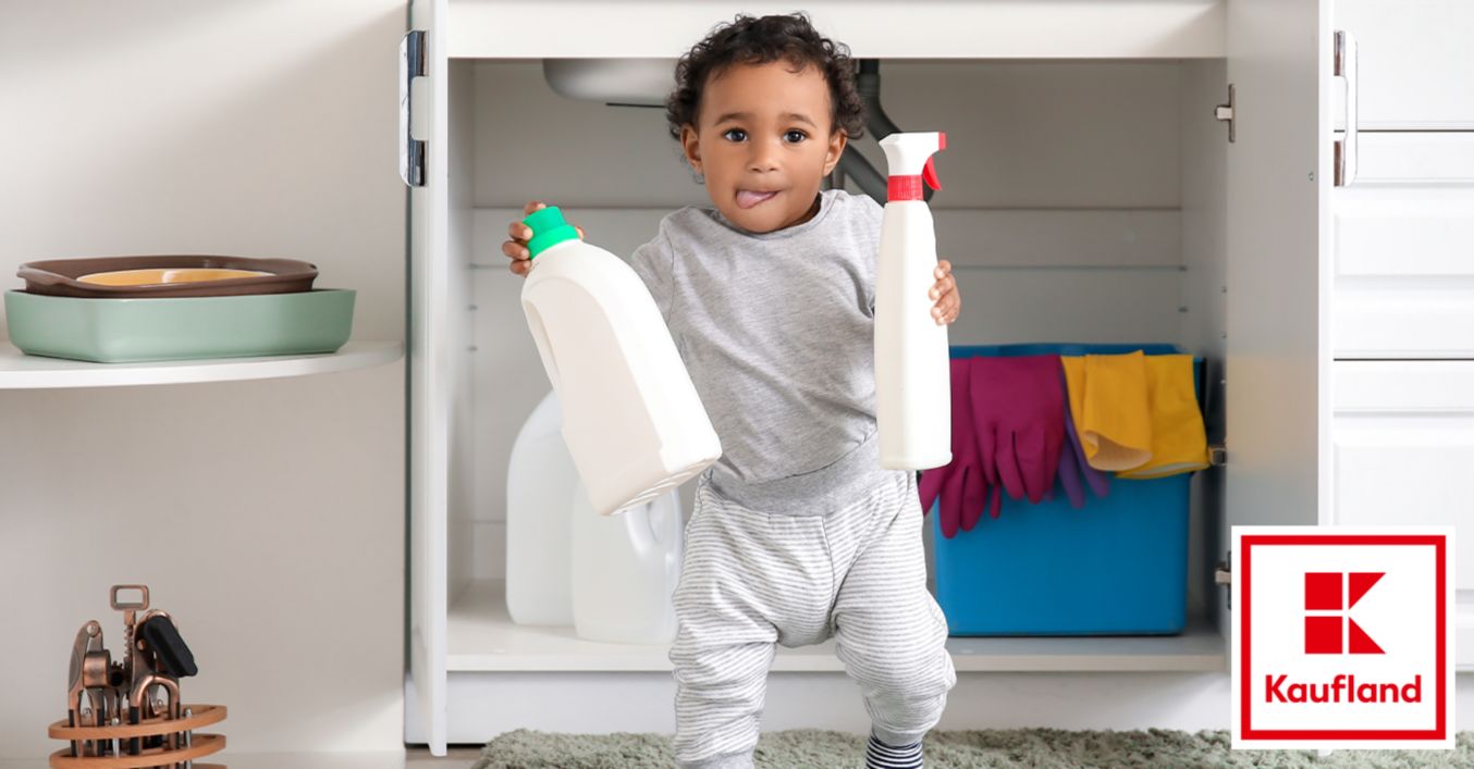 Reinigungsmittel außer Reichweite von Kleinkindern aufbewahren