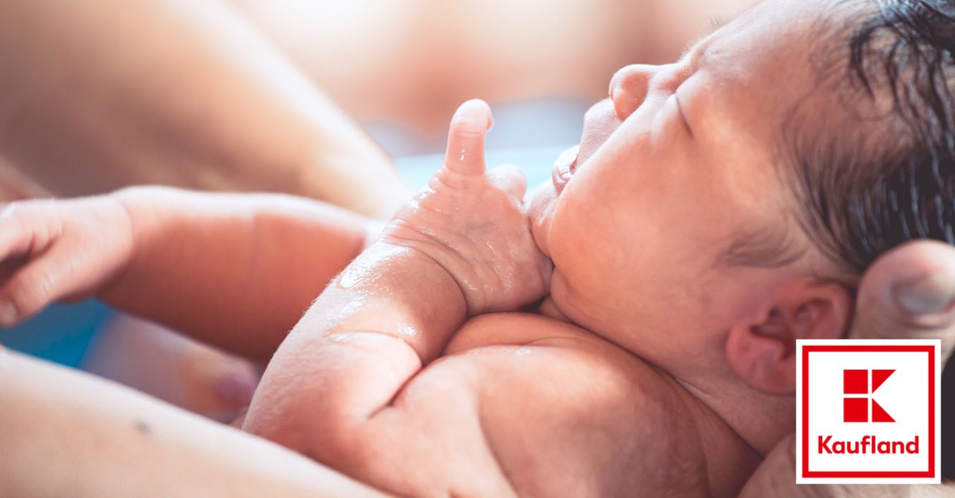 Bei einer Wassergeburt wird das Baby ins warme Wasser geboren und dann langsam und vorsichtig an die Wasseroberfläche gehoben. Keine Sorge: Das Baby nimmt durch seinen angeborenen Tauchreflex erst dann seinen ersten Atemzug, wenn das Gesicht an der Wasseroberfläche Kontakt mit Luft bekommt. Nach einer Wassergeburt wird das Baby auf die Brust der Mutter gelegt, um den Hautkontakt zu fördern, genau wie bei einer Geburt ohne Wasser.