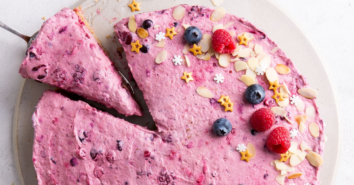 Beeren-Mix auftauen lassen und zur Seite stellen. Für den Teig Margarine mit Ei, 60 Gramm Zucker, Joghurt und Mineralwasser verrühren. Mit Mehl, Backpulver und 1 Prise Salz zu einem glatten Teig vermengen. Teig in eine mit Backpapier ausgelegte Springform (Durchmesser circa 28 Zentimeter) geben und im vorgeheizten Backofen bei 180 °C (Umluft: 160 °C) circa 30 Minuten backen.