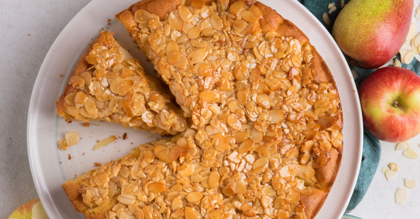 Apfel-Birnen-Kuchen mit Bienenstich-Haube