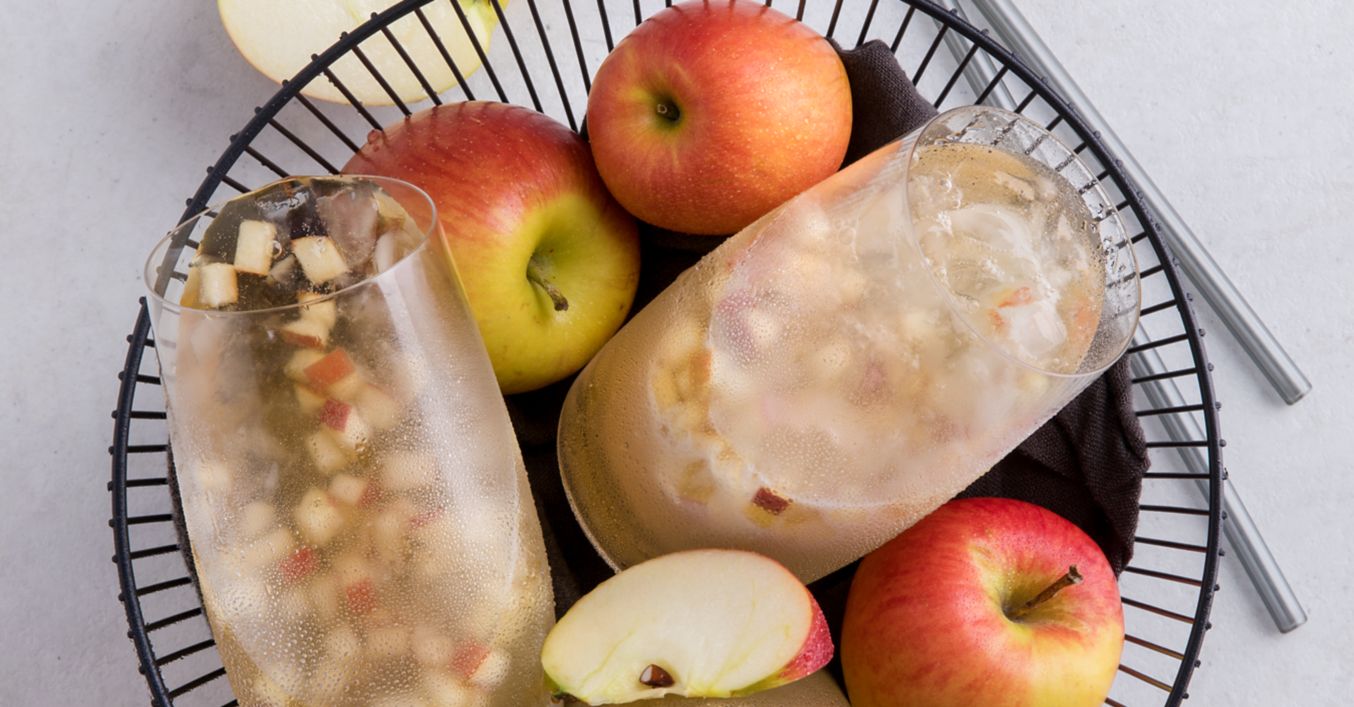 Apfel waschen, vierteln, Kerngehäuse entfernen und den Apfel in kleine Würfel schneiden. Mit Whiskey, Calvados und Apfelsaft verrühren und auf crushed Ice in 4 Gläser füllen.