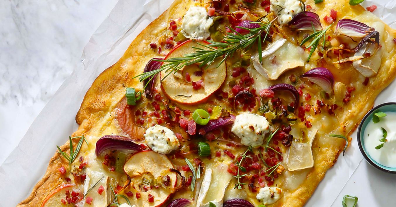 Apfel-Flammkuchen mit Ziegenkäse