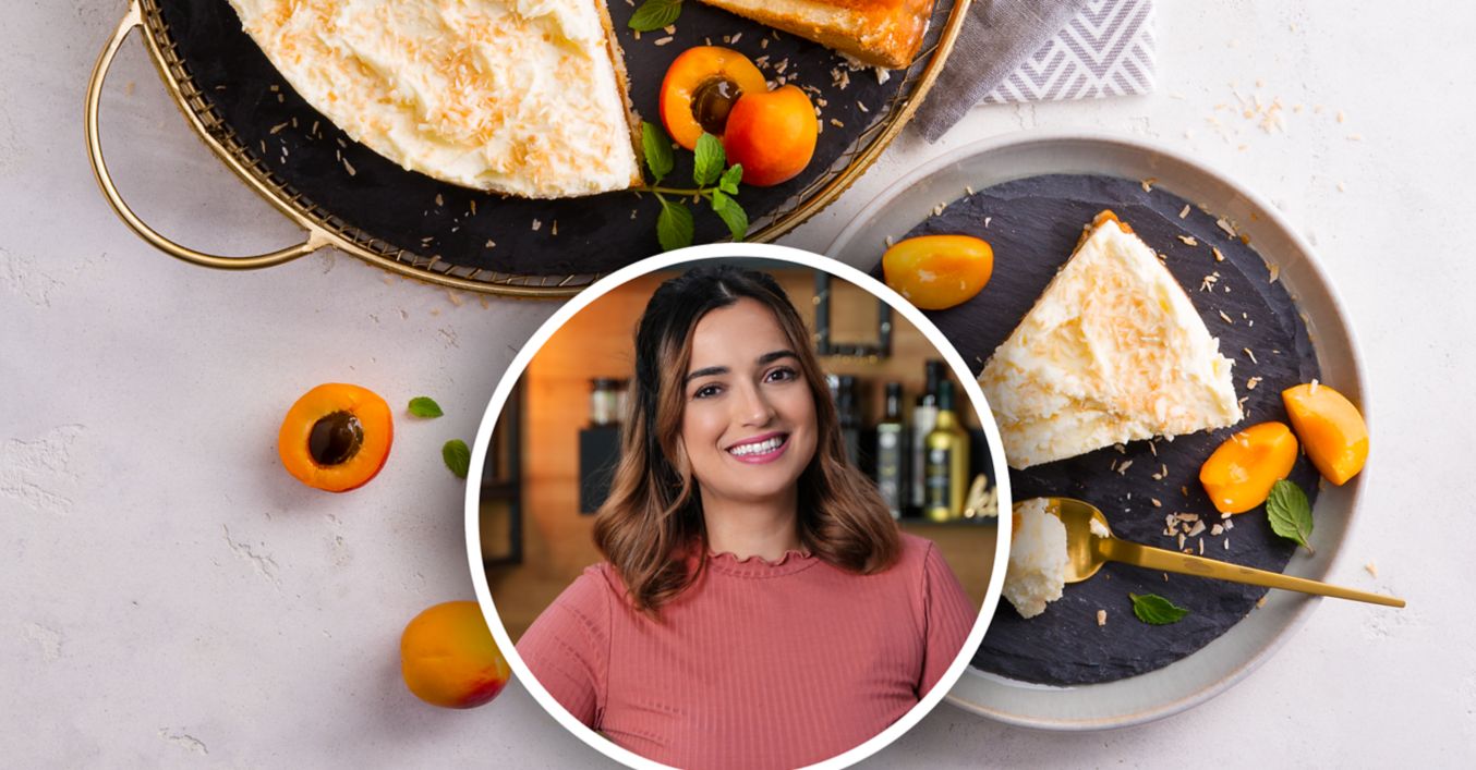 Den Biskuitboden auf eine Tortenplatte legen und einen Springformrand mit 26 Zentimetern Durchmesser darum spannen. Die Aprikosenmasse auf dem Boden verteilen und mit einer Winkelpalette ebenmäßig verstreichen.