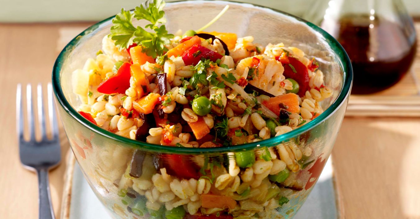 Weichweizen in Salzwasser circa 10 Minuten zubereiten. Gemüse in 1 Esslöffel erhitztem Öl circa 10 Minuten garen und mit Weichweizen auskühlen lassen.