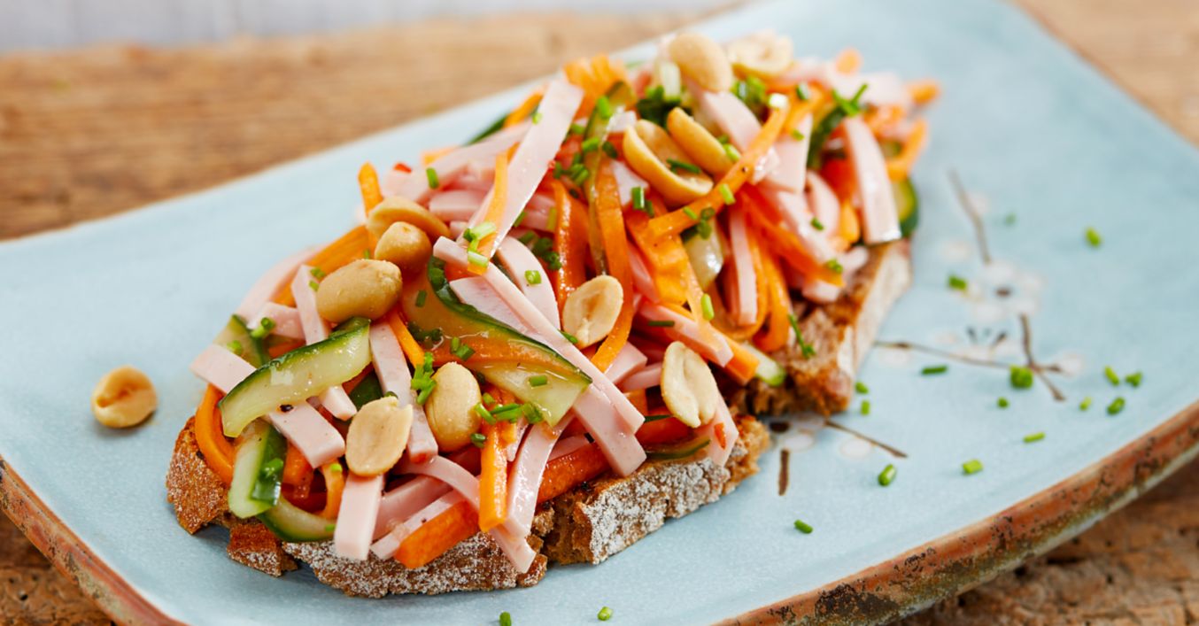 Asiatischer-Wurstsalat auf Bauernbrot