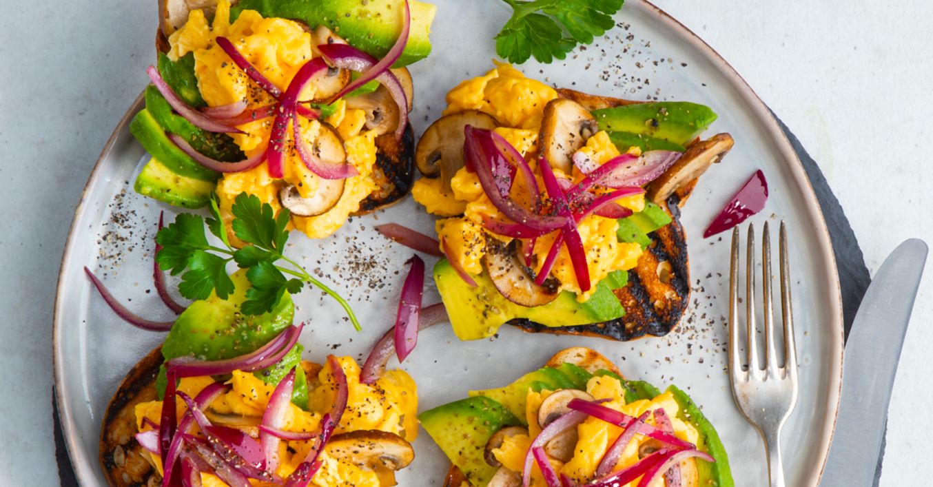 Avocado-Brot mit Champignon-Rührei