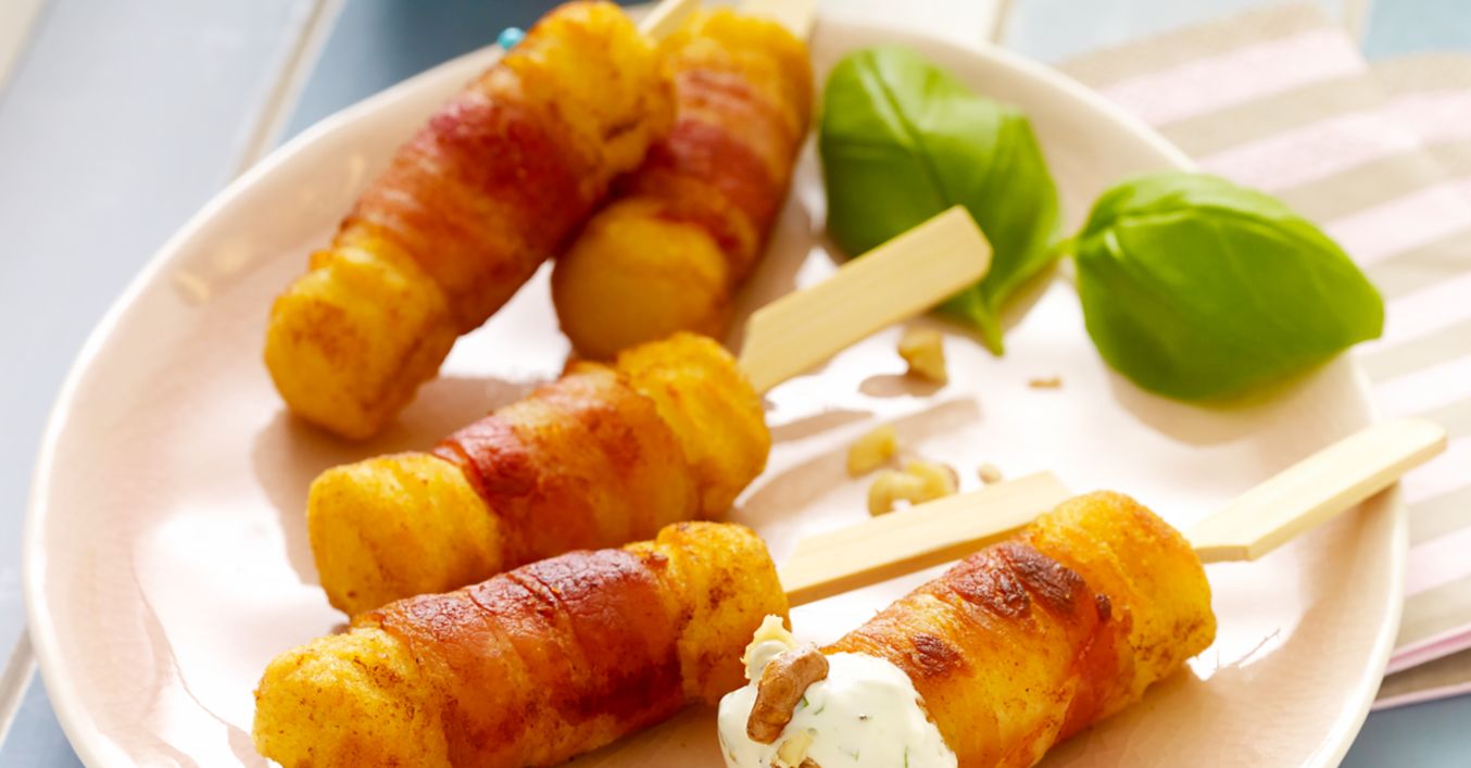 Bacon-Sticks mit Walnuss-Quark-Dip