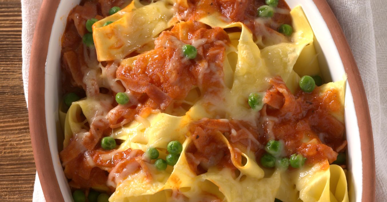 Eine Auflaufform ausfetten. Die Nudeln darin verteilen und mit dem Käse bestreuen.