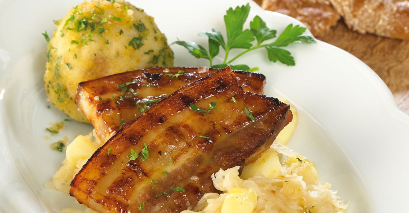 Bayerischer Schweinebauch mit Bierkraut