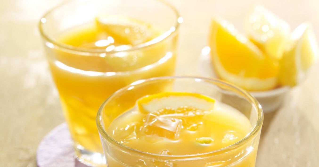 Mit Zitronenscheibe garniert servieren.