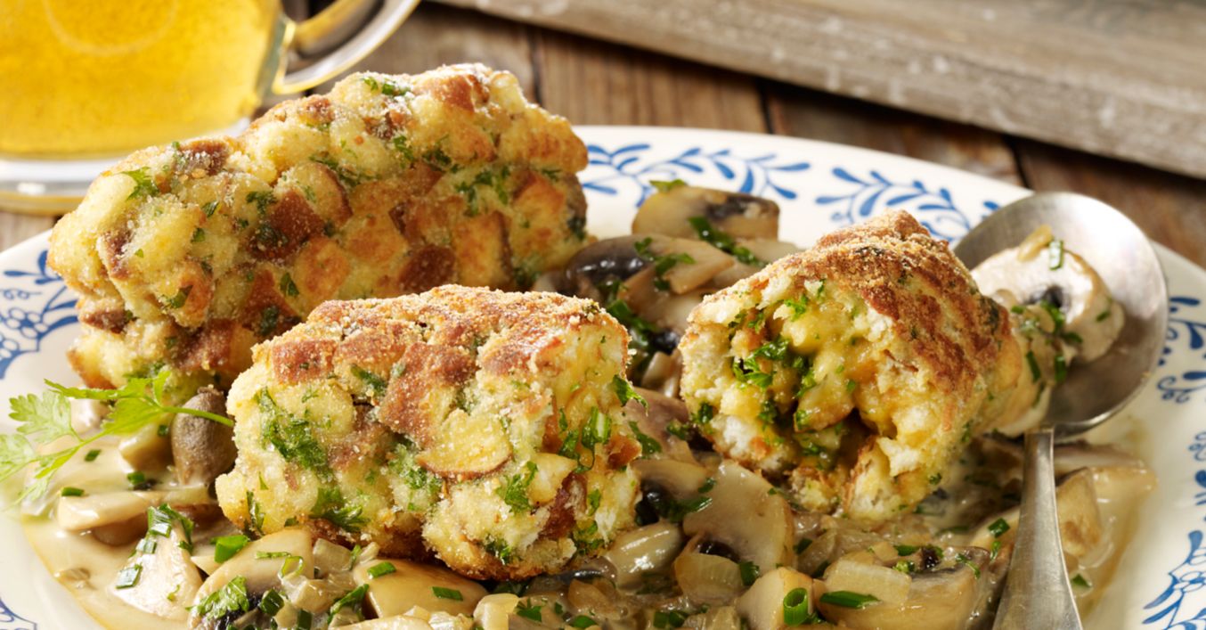 Brezelkroketten mit Rahmpilzen