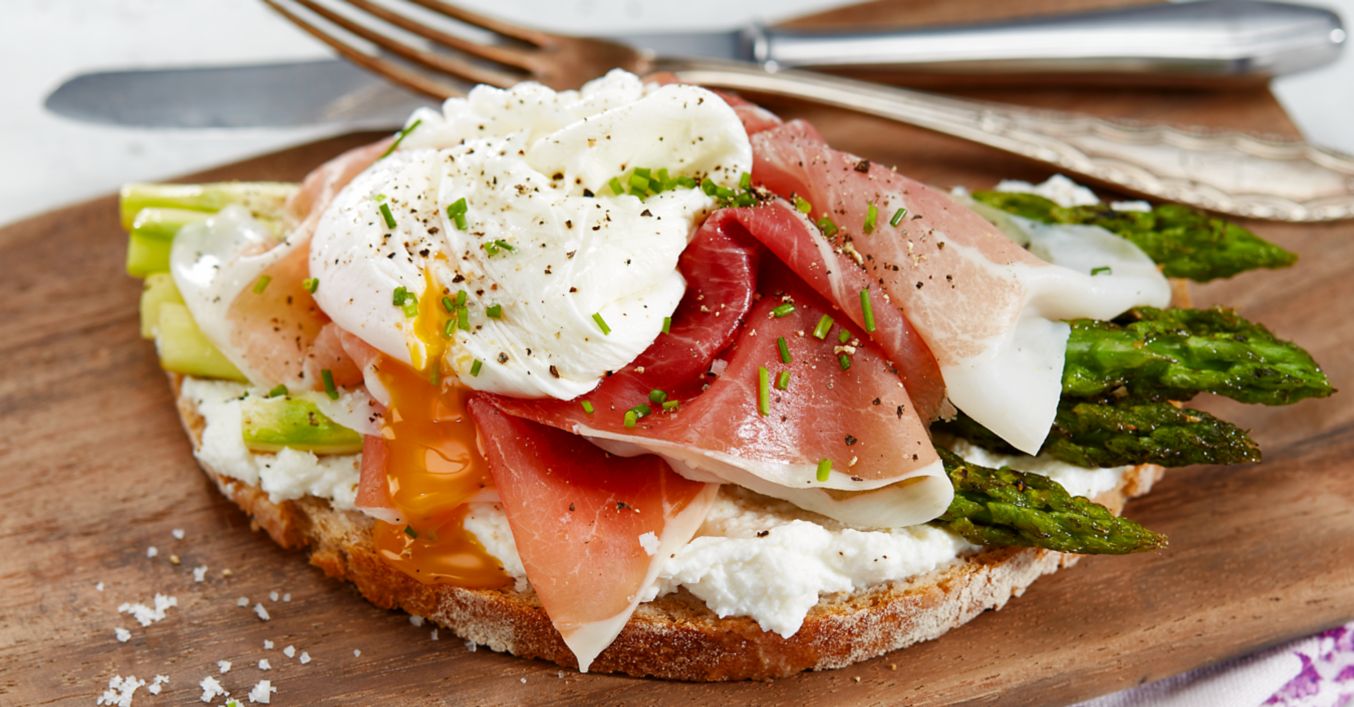 Die Brote mit dem Spargel belegen, Parmaschinken und pochierte Eier darauf verteilen. Noch mal pfeffern und mit Schnittlauch garniert servieren.