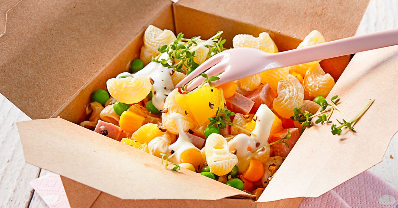 Bunter Nudelsalat mit Ananas, Käse und Lyoner