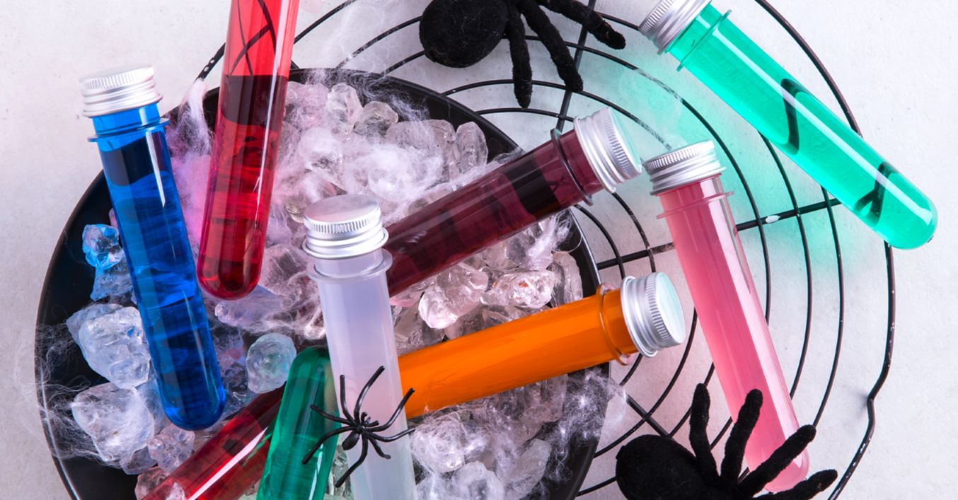 Vampir-Cocktails auf Reagenzgläser verteilen.
