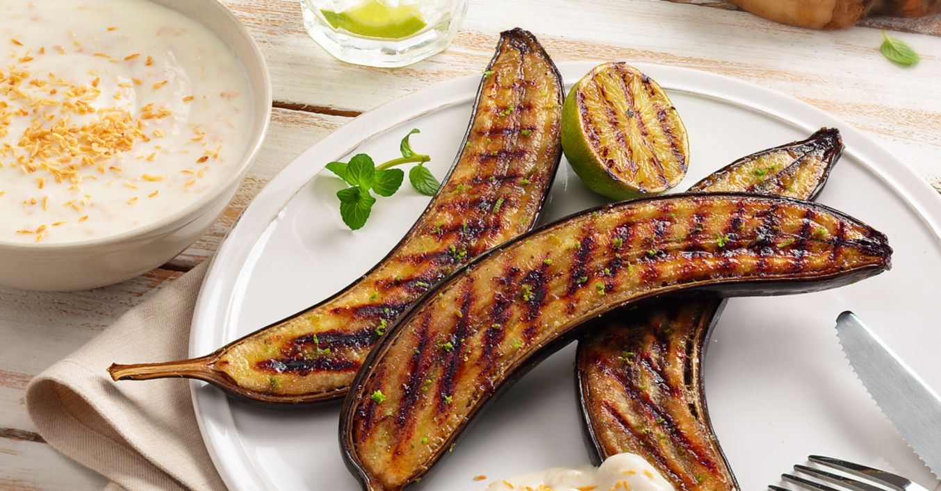 Bananen auf dem Grill zubereiten und mit dem Kokosdip servieren