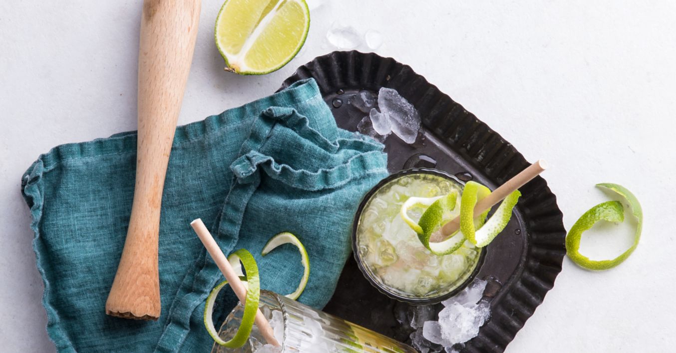 Limetten heiß abwaschen, trocken reiben, achteln und in ein Glas geben.