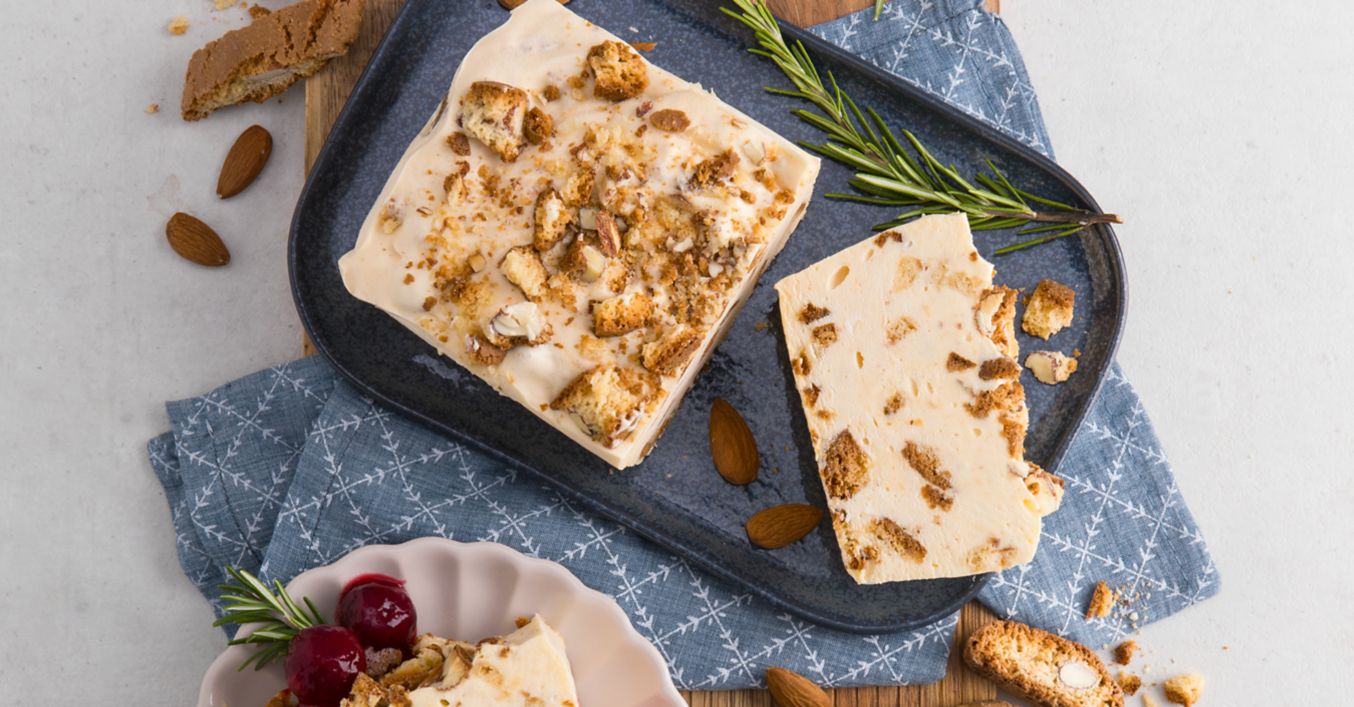 Cantuccini zerbröseln. Sahne steifschlagen und unter die abgekühlte Eimasse rühren, Cantuccini unterheben.