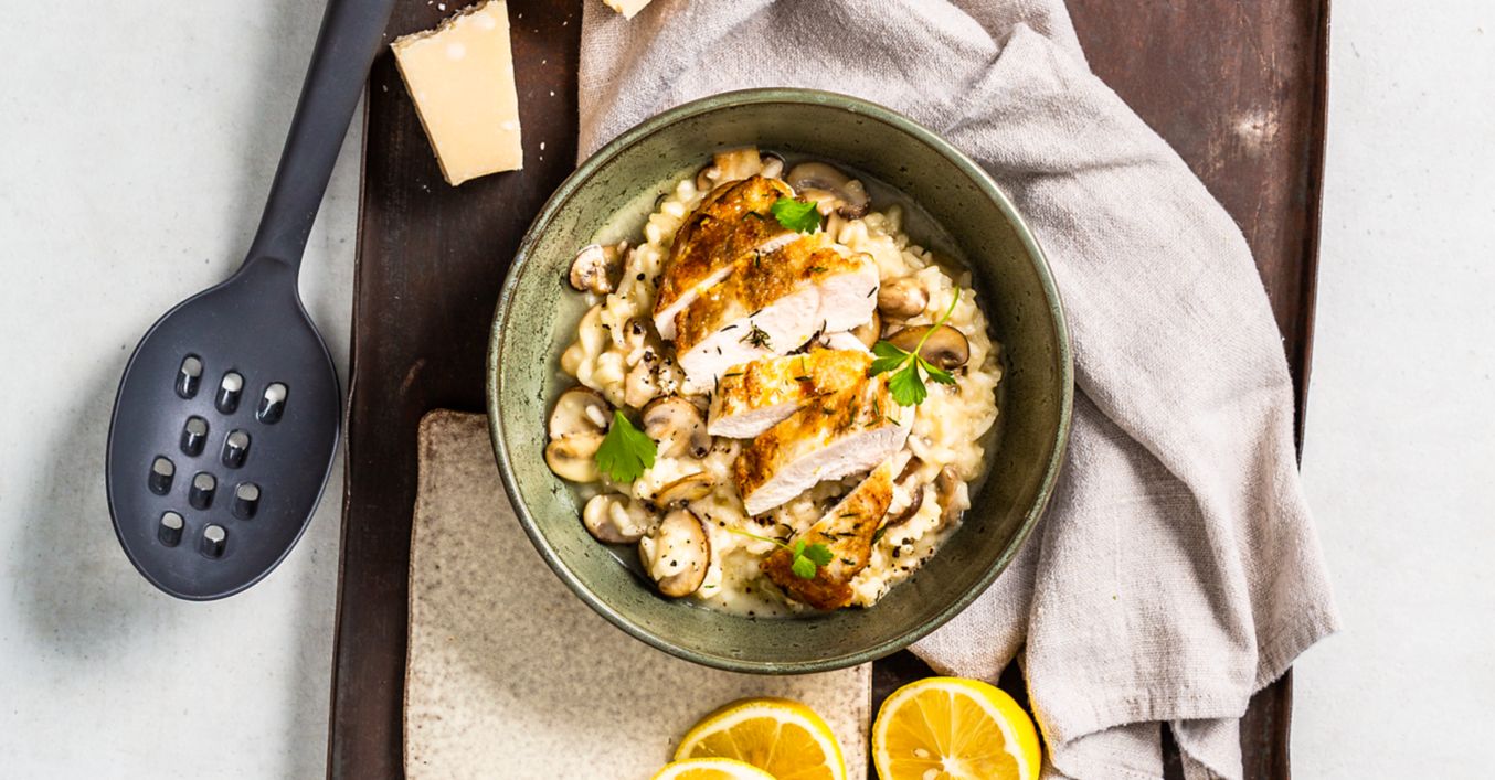 Champignon-Risotto mit Zitronen-Hähnchen