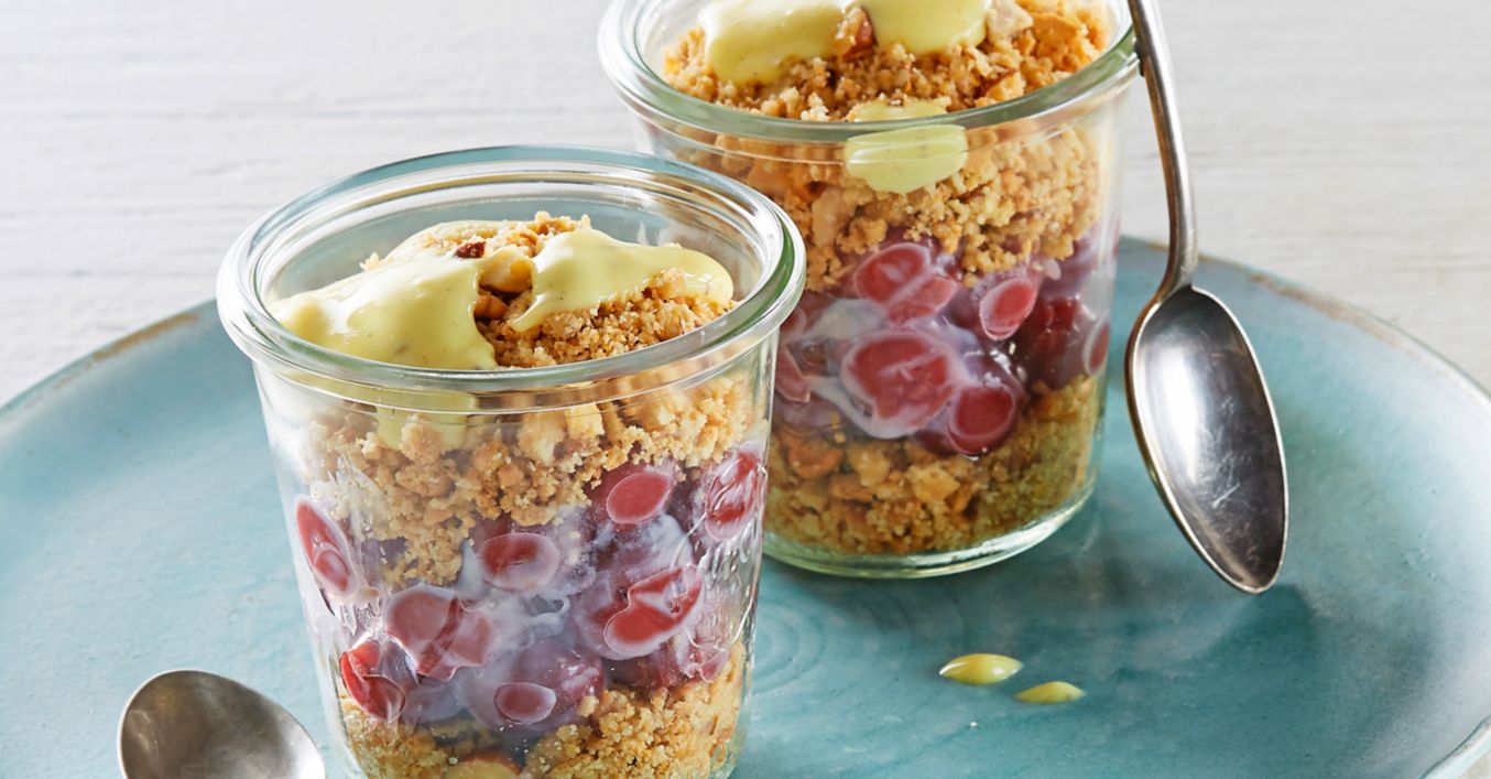 Cherry-Crumble mit Vanillesoße