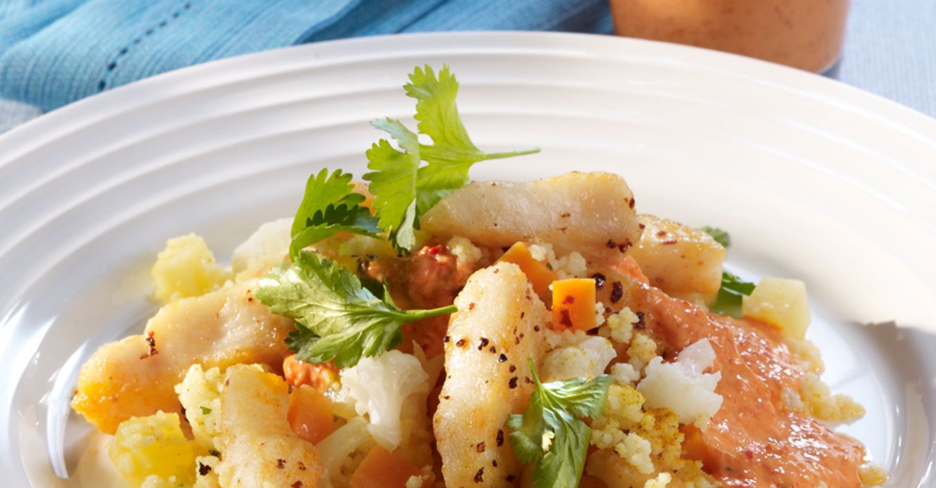 Chili-Pangasiusfilet-Streifen mit Gemüse-Couscous