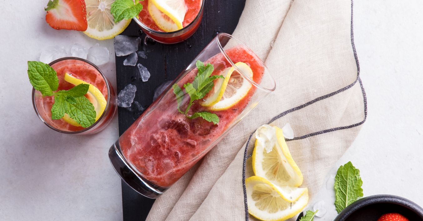 Erdbeeren antauen lassen und in den Standmixer geben. Zitronen-, Traubensaft und Energydrink hinzugeben und mixen.
