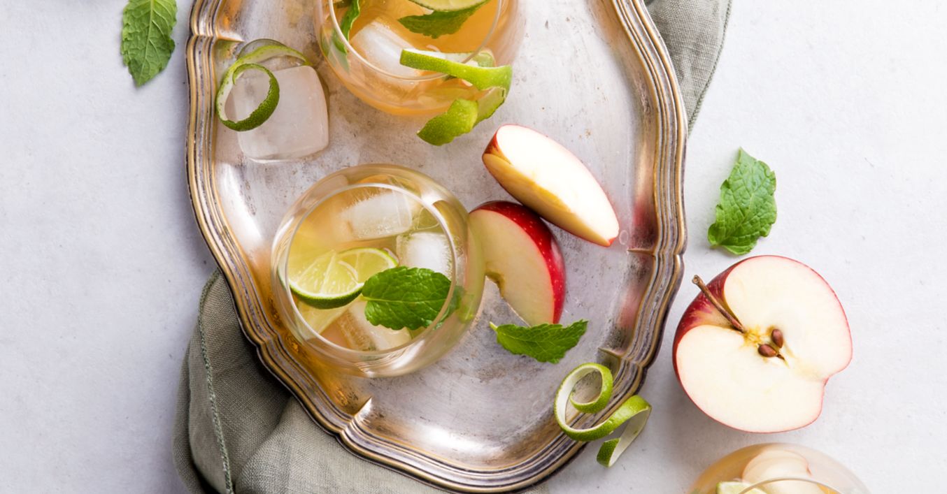 Glas mit Eiswürfeln füllen. Apfel-, Limettensaft und Energydrink eingießen und verrühren.