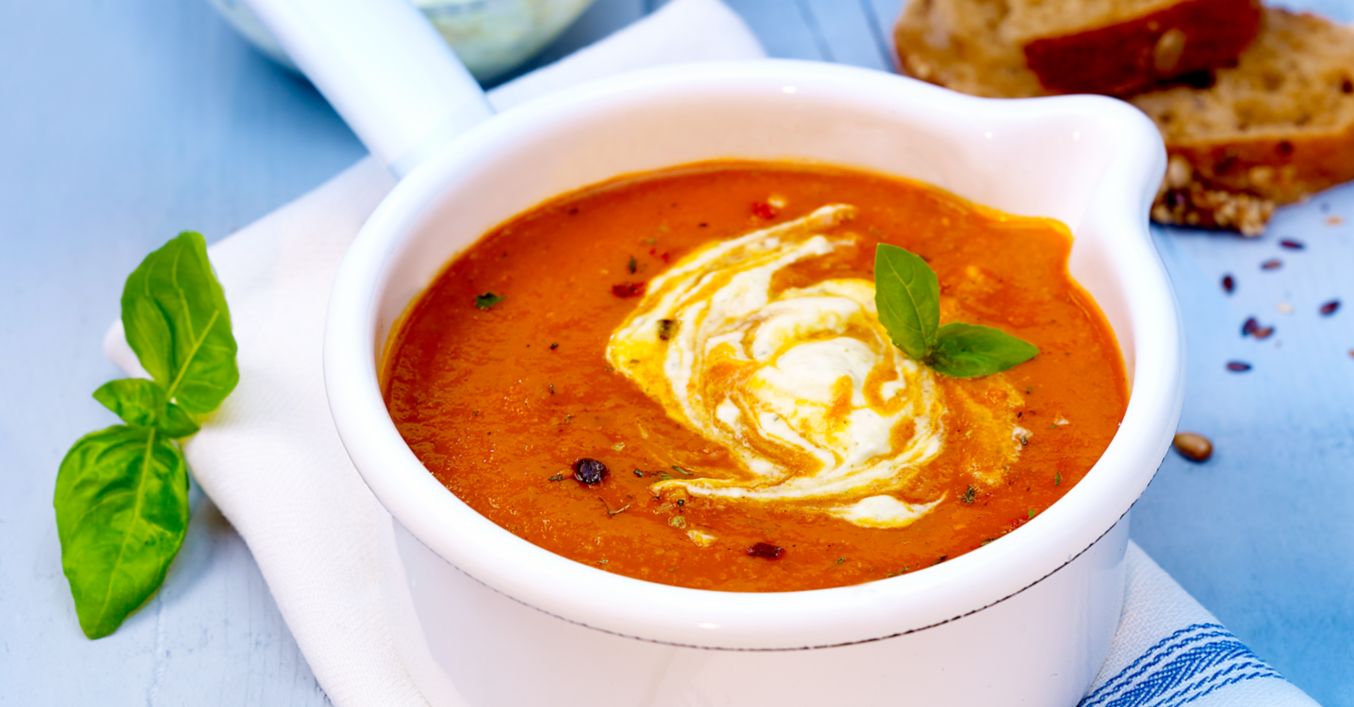 Suppe fein pürieren, mit Salz, Pfeffer und 1 Prise Zucker abschmecken, mit Pesto-Sahne und nach Wunsch mit Basilikumblättchen garniert servieren.