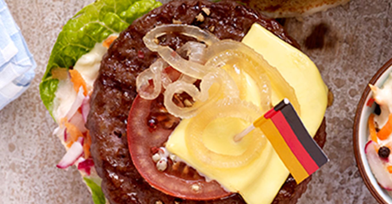 Deutschland-Burger nach Wunsch mit Petersilie garniert servieren.