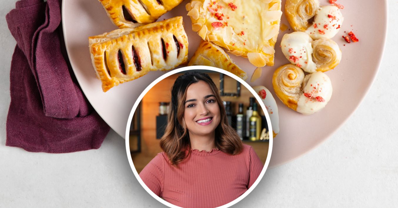 Backofen auf 160 °C Umluft vorheizen. Blätterteigplatten 10 Minuten auf der Arbeitsfläche antauen lassen.