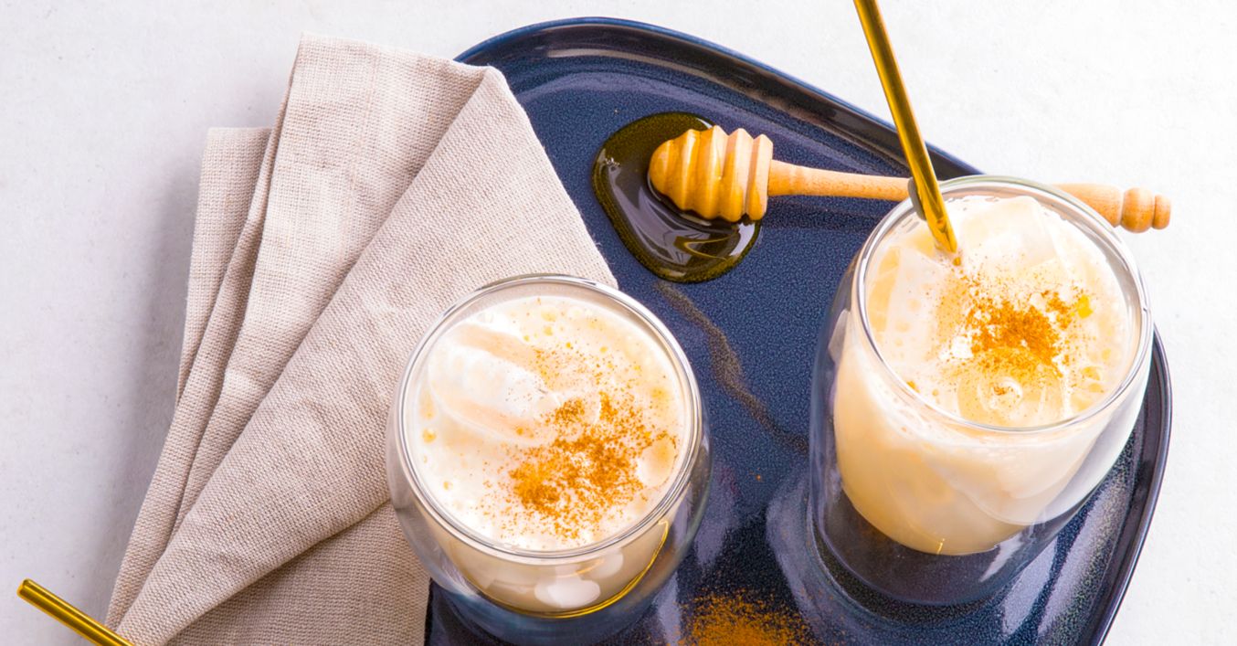 Eigelb, Honig und Weinbrand mit einem Stabmixer pürieren.