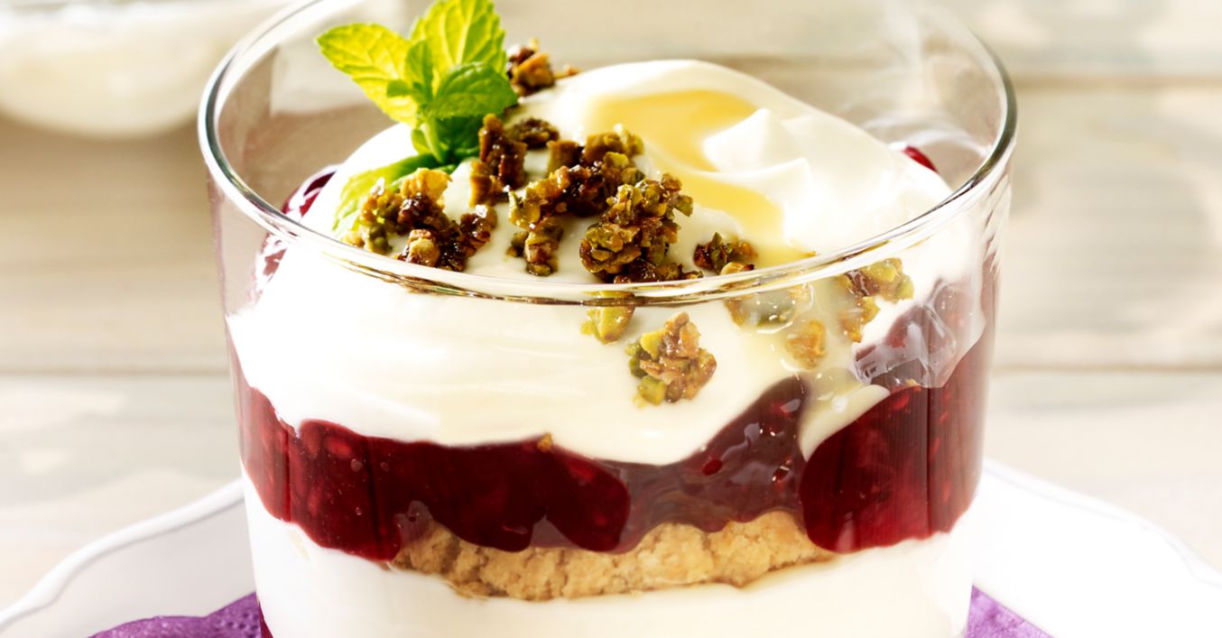 Mascarpone, saure Sahne, Eierlikör und restlichen Zucker verrühren. 4 Haferkekse in 4 Gläser legen, die Hälfte der Roten Grütze daraufverteilen und mit der Hälfte der Mascarpone abdecken. Die Schichtung wiederholen und circa 1 Stunde kalt stellen.