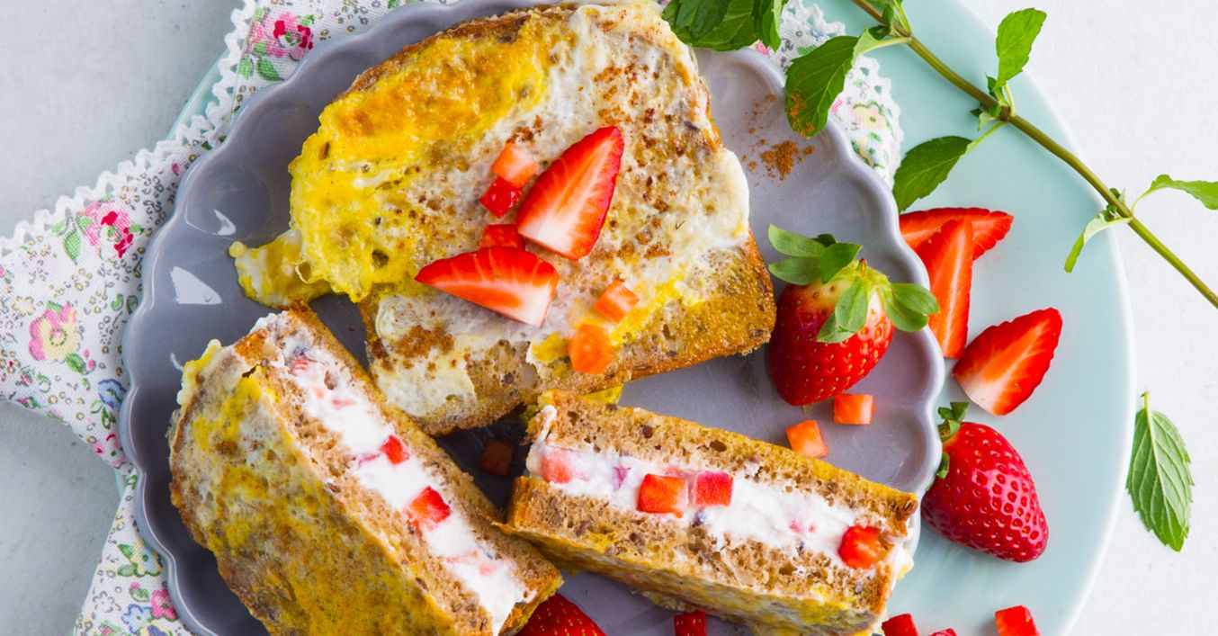 Mit der Ricotta-Erdbeermasse die unteren Brothälften bestreichen und zuklappen.