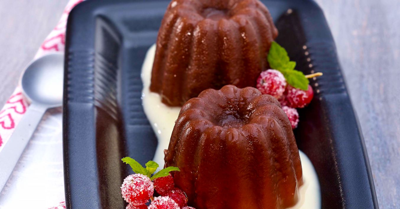 Puddingmasse leicht auskühlen lassen, in Formen füllen und circa 2 Stunden kalt stellen.