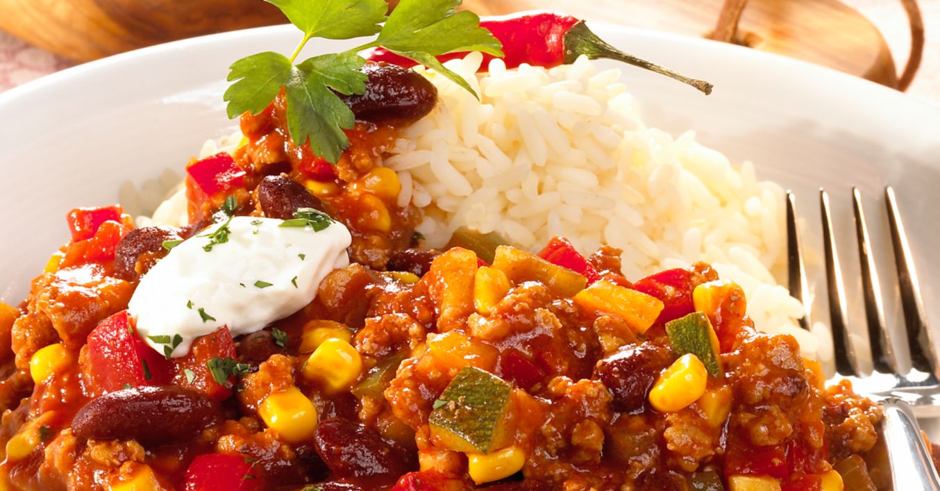 Feuriges Chili con Carne mit Reis