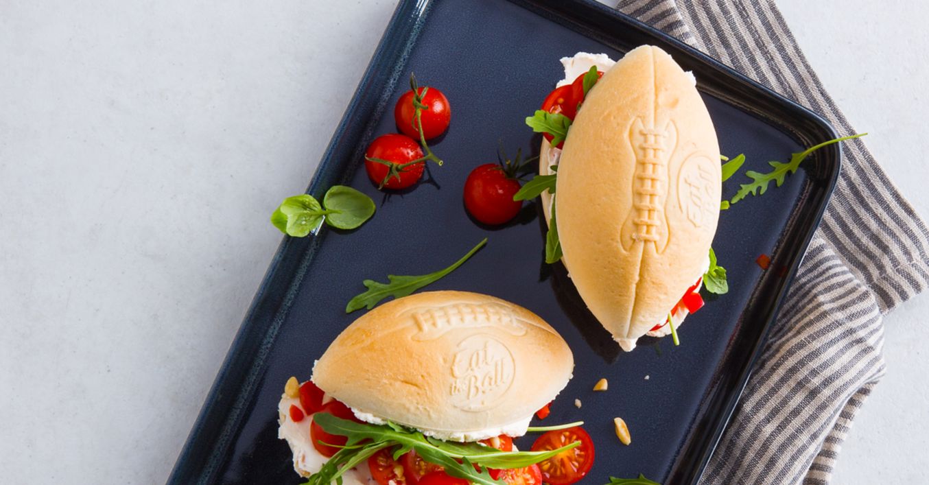 Brötchen quer aufschneiden und mit der Frischkäse-Paprika-Creme bestreichen. Rucola waschen, trocken tupfen und in mundgerechte Stücke zupfen. Tomaten waschen und in Scheiben schneiden. Die unteren Brötchenhälften nacheinander mit Rucola, Tomatenscheiben und Basilikumblättern belegen, obere Brötchenhälften auflegen, etwas andrücken und servieren.