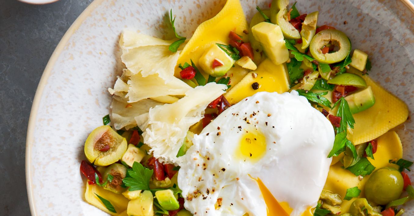 Die heißen Nudeln mit Kochwasser in eine Schüssel geben. Avocadowürfel, Petersilie, Olivenöl und Antipasti dazugeben, mit Salz und Pfeffer würzen und auf 4 Tellern anrichten.