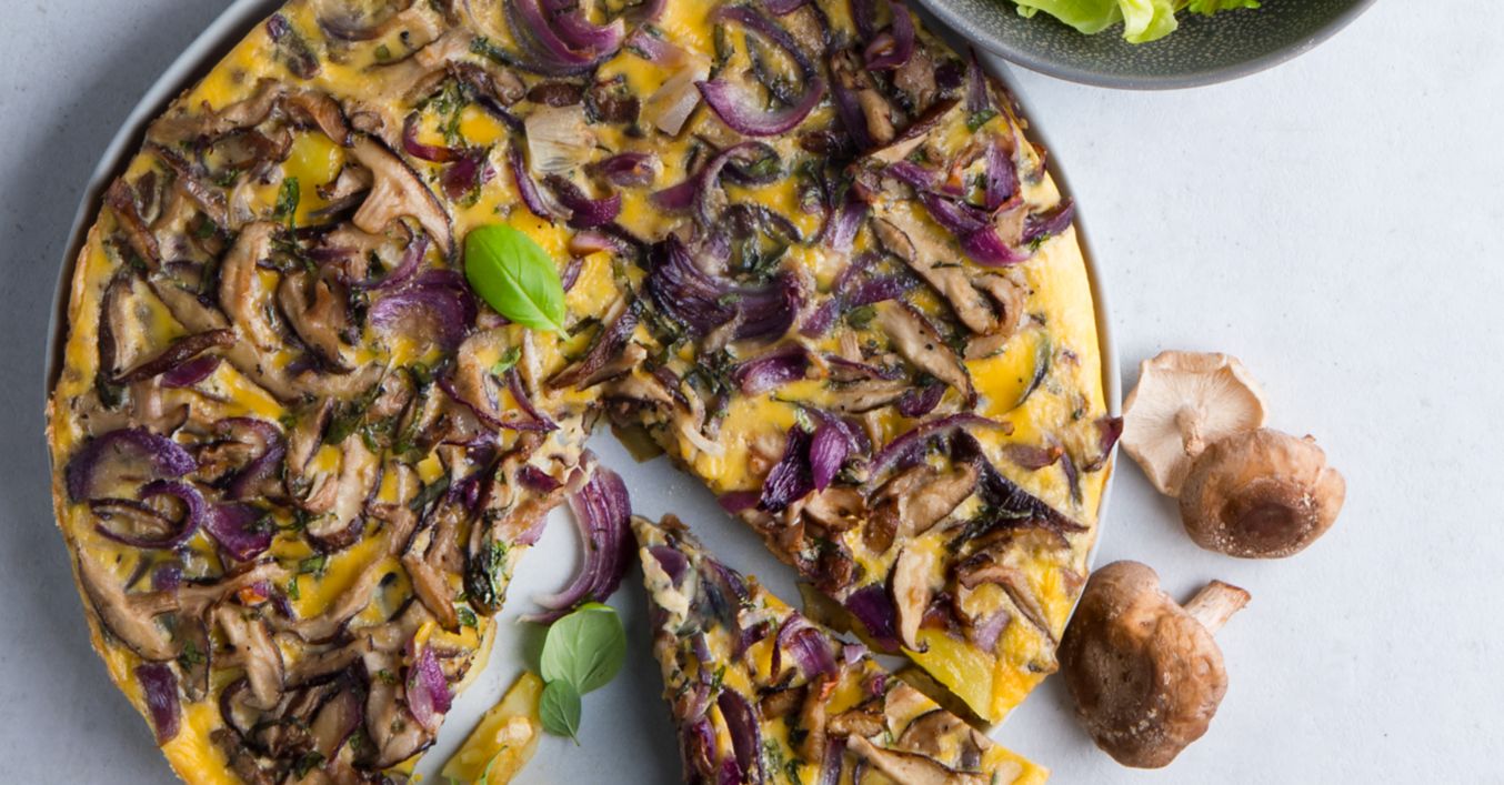 Kräuter waschen, abtropfen lassen, Blätter abzupfen und in Streifen schneiden. Kartoffeln schälen, in feine Scheiben schneiden und in der Pfanne mit der restlichen Butter und Salz bei mittlerer Hitze circa 10 Minuten goldgelb braten. Eier mit 1/2 Teelöffel Salz und Milch verquirlen, zu den Kartoffeln geben, unterrühren und circa 1 Minute stocken lassen.