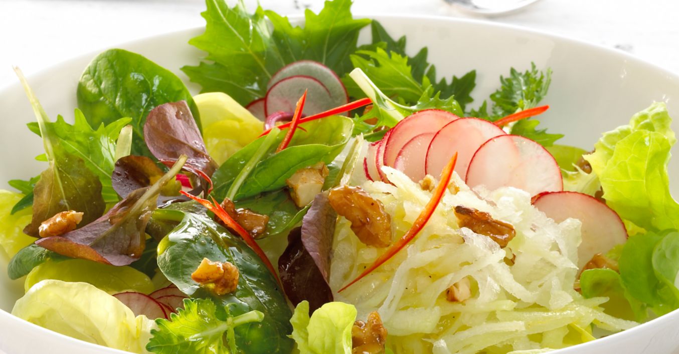 Frühlingssalat mit Honig-Chili-Walnüssen