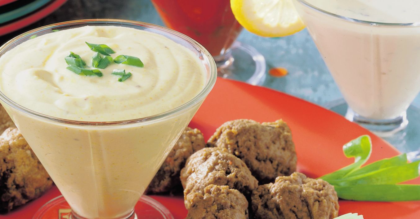 Für den Curry-Honig-Dip saure Sahne mit Senf, Honig, Currypulver, Salz und Pfeffer verrühren, abschmecken und nach Wunsch mit Schnittlauchröllchen garnieren. Gabelbratröllchen abtropfen lassen und auf einer Platte anrichten. Mit den verschiedenen Dips und nach Wunsch mit Bleichselleriestangen garniert servieren.