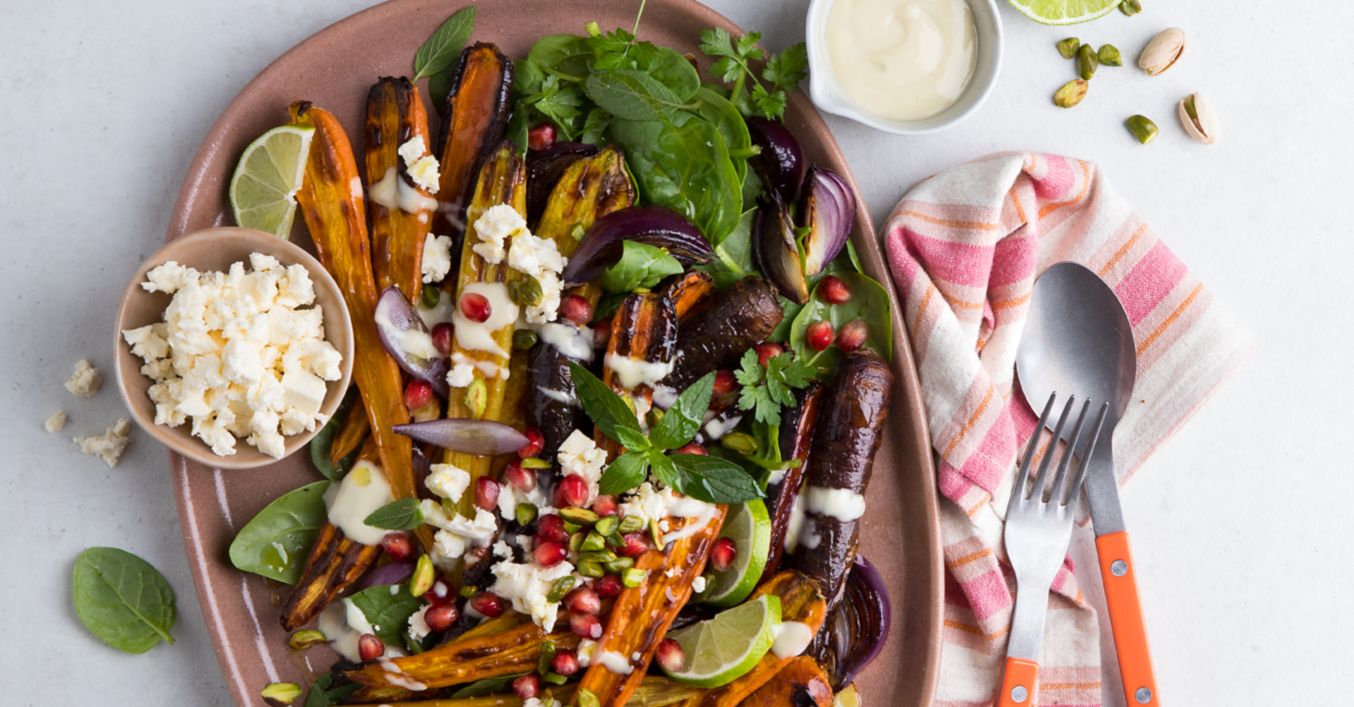 Gebackene Harissa Möhren mit Granatapfel