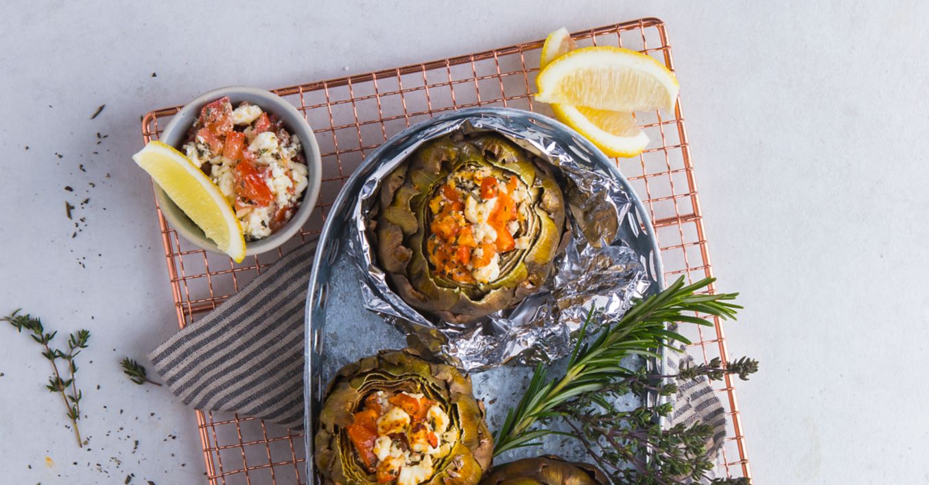 Gegrillte Artischocken mit Tomaten-Feta-Füllung