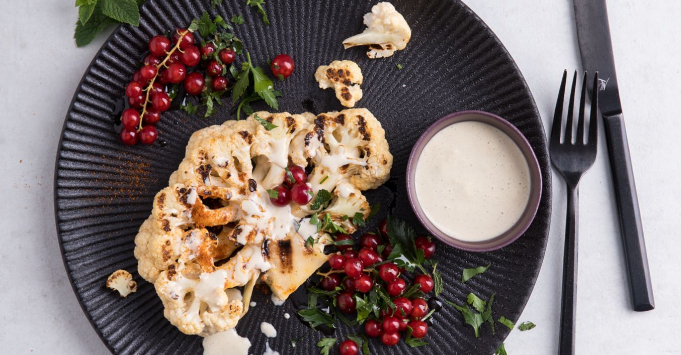 Gegrillter Blumenkohl mit Kräuter-Johannisbeersalat