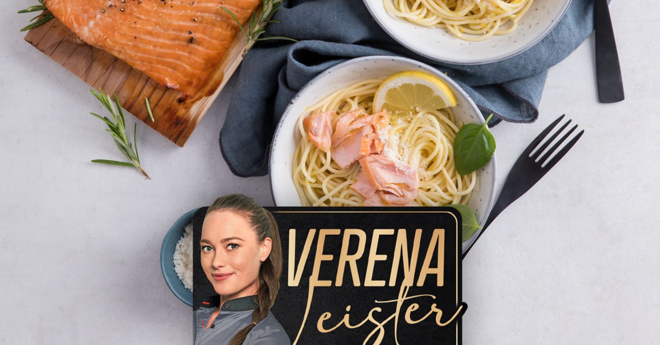 Der rauchige Lachs vom Zedernholz passt perfekt zur fruchtigen Pasta.